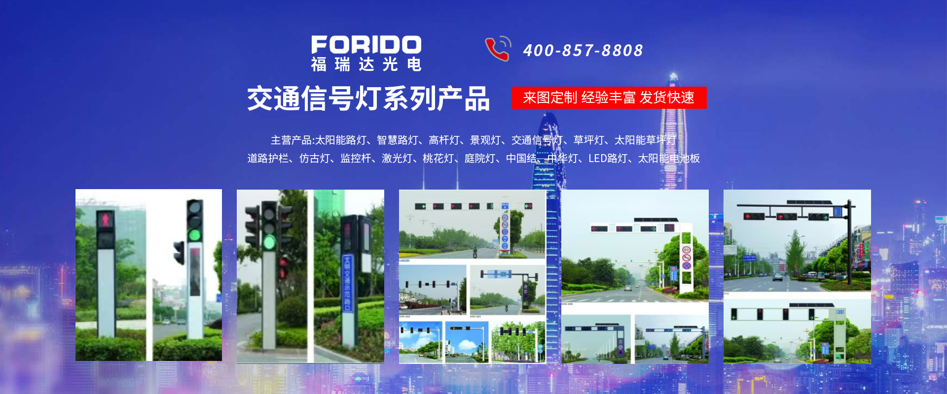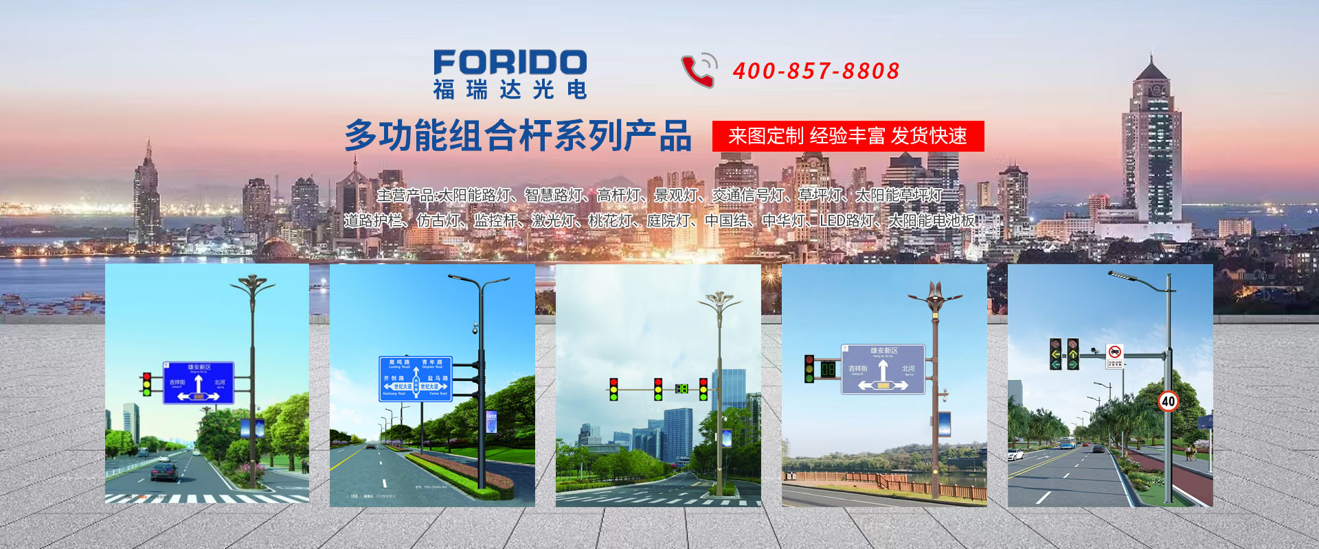 揚(yáng)州福瑞達(dá)光電科技有限公司位于淮左名都?xì)v史文化名城、中國路燈制造基地?fù)P州市北郊菱塘工業(yè)園,公司占地面積76000平方米,注冊資金10518萬元,擁有高級(jí)技術(shù)嫻熟的員工280多人,擁有大型折彎機(jī)、激光切割、數(shù)控注塑機(jī)、壓鑄機(jī)、自動(dòng)埋弧焊、氣焊、彩色粉末靜電噴塑等大型自動(dòng)化設(shè)備,我公司是一家集設(shè)計(jì)、研發(fā)、生產(chǎn)、銷售、施工安裝服務(wù)為一體的戶外交通照明產(chǎn)品制造商,主要生產(chǎn)智慧路燈、太陽能路燈、LED路燈、高桿燈、景觀燈、交通信號(hào)燈、交通標(biāo)志牌、通信鐵塔、路跨鋼結(jié)構(gòu)、公交站臺(tái)、太陽能光伏組件、景點(diǎn)亮化、樓宇亮化工程的設(shè)計(jì)施工等。公司秉承開拓創(chuàng)新、銳意進(jìn)取、精誠服務(wù)的企業(yè)精神,堅(jiān)持以“誠信為本、技術(shù)為先、服務(wù)是金”的合作理念,我們憑借先進(jìn)的制造工藝、優(yōu)質(zhì)的產(chǎn)品質(zhì)量、合理的市場價(jià)格和完善的售后服務(wù)贏得了廣闊的市場和客戶的信賴。 我公司已通過ISO9001質(zhì)量體系認(rèn)證、ISO14001環(huán)境管理體認(rèn)證,CQC產(chǎn)品認(rèn)證,中國節(jié)能產(chǎn)品認(rèn)證,通過“CCC”強(qiáng)制性產(chǎn)品認(rèn)證,具有市政總承包,照明,交安,設(shè)計(jì)等資質(zhì)···